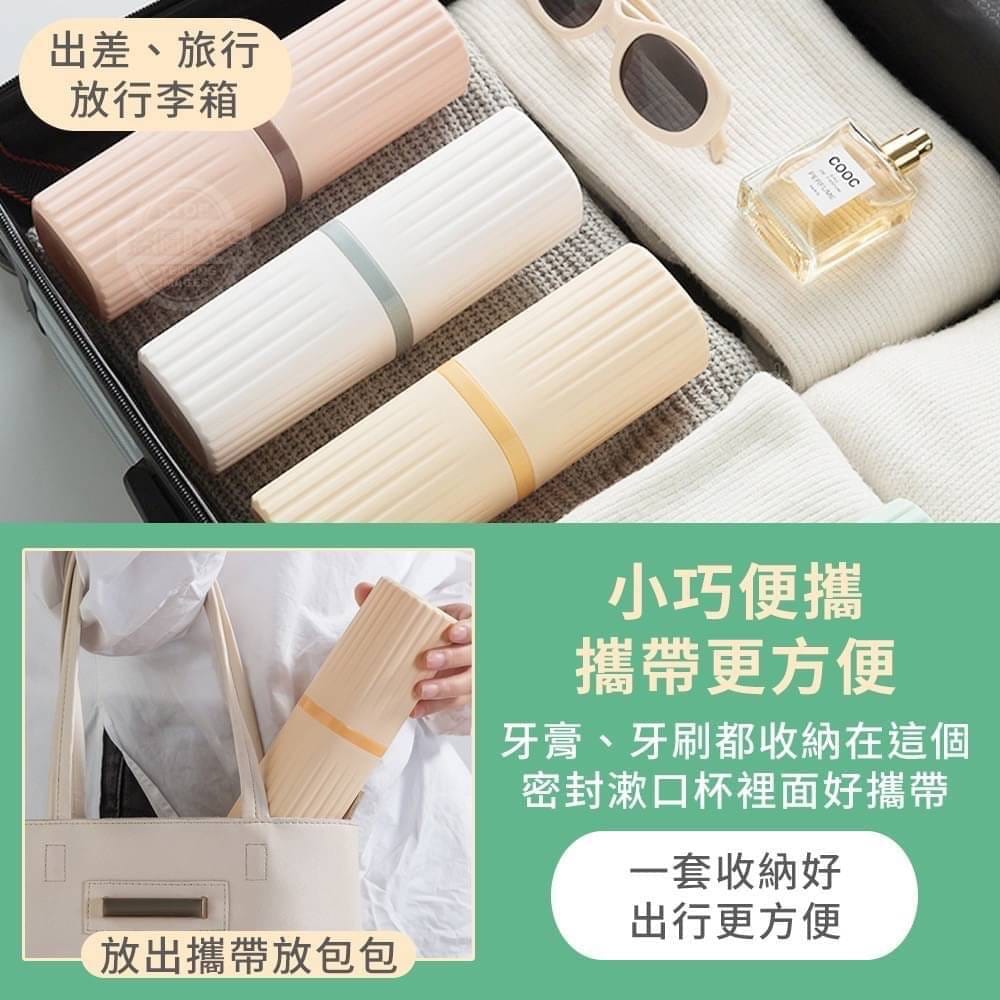 牙膏、牙刷都收納在這個密封漱口杯裡面好攜帶