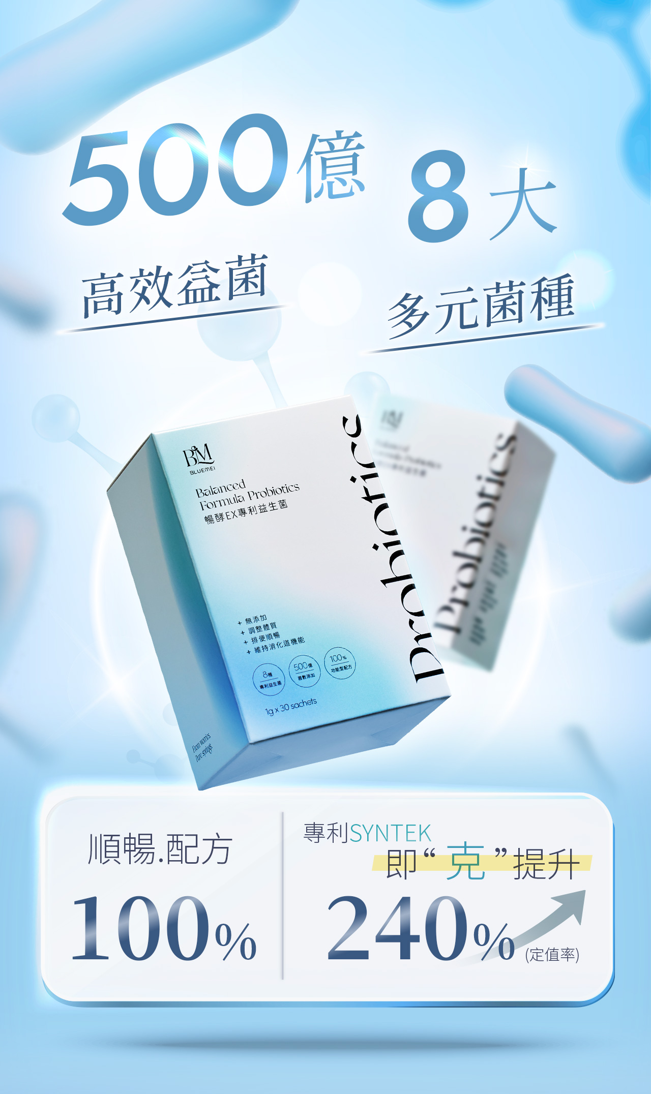 「布樂美|暢酵益生菌」透過SYNTEK包埋技術,根據菌種特性設計「專屬」的包埋素材、配方,搭配嚴格的乾燥條件與控溫參數,大幅強化了菌株的耐受性、穩定性與「定殖力」!讓8大好菌穩穩「扎根」在您的消化道中!